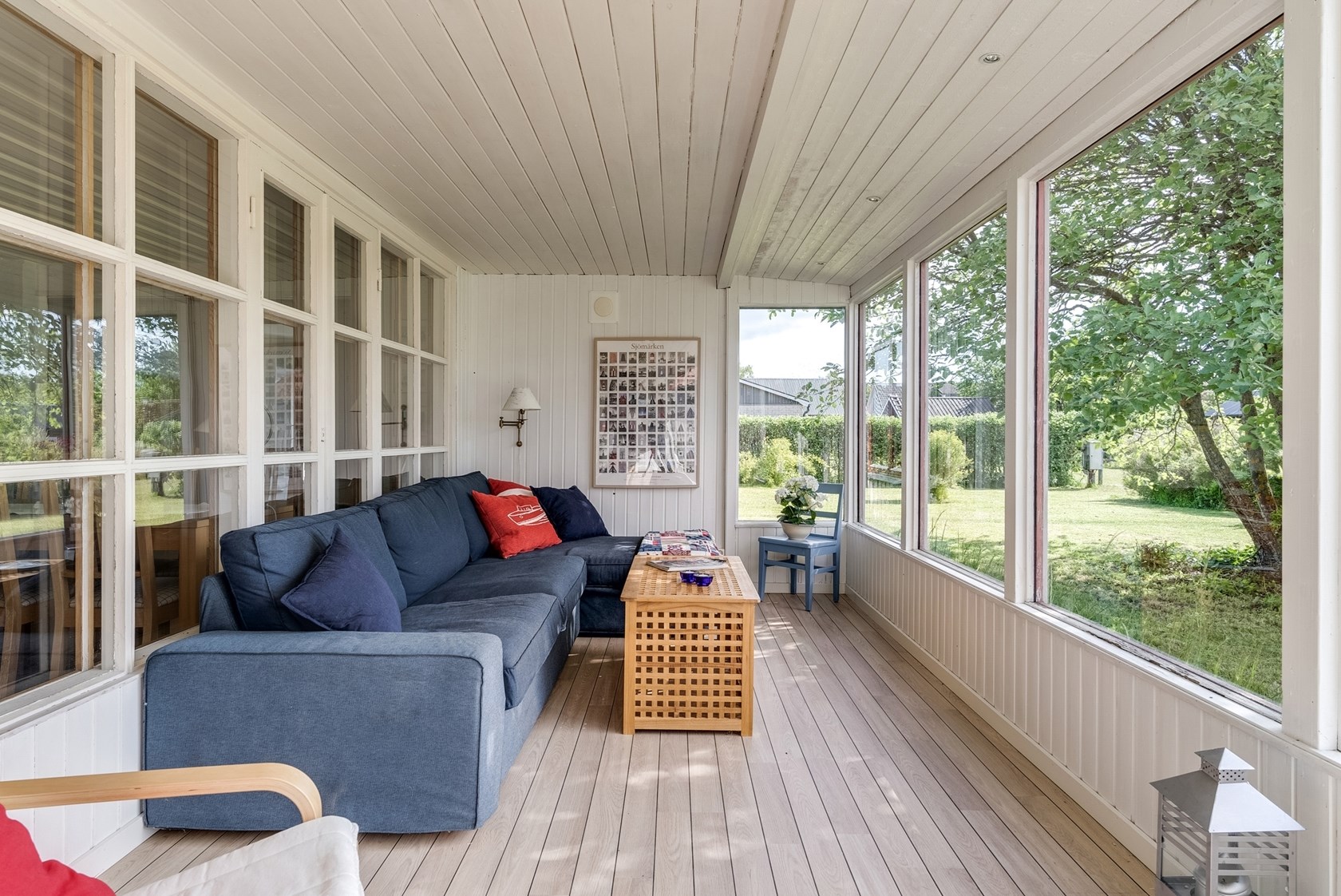 Husets tre sovrum är välkomnande, med ljusa väggar och vackra trägolv.