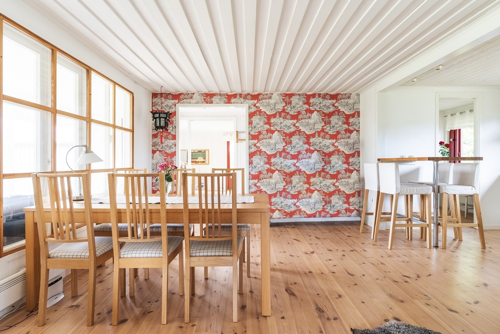 I anslutning till köket finns matplatsen i en öppen planlösning, vilket ger en härlig känsla av gemenskap och öppenhet.